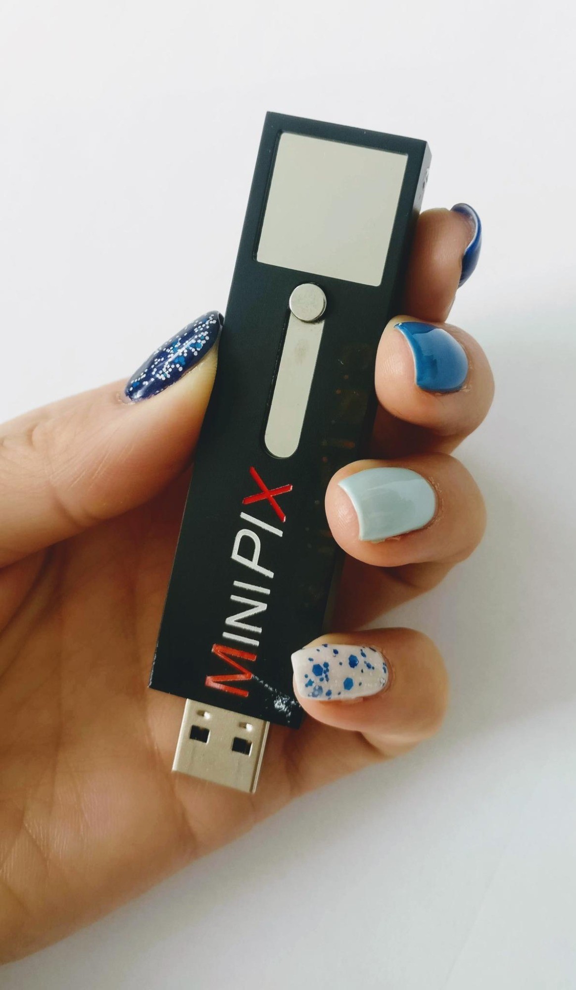 Minipix camera contains single Timepix device with Silicon sensor. Detector can be coupled with a pinhole, coded aperture or X-ray optics. The system can be used in imaging applications for example X-ray or neutron imaging. It has ability to recognise individual ionizing particles and sort them into several groups according their tracks e.g. X-rays, electrons, neutrons, alphas etc. Energy can be measured for each detected particle. Therefore, this device can find use for instance in radiation monitoring or ionizing particle tracking.