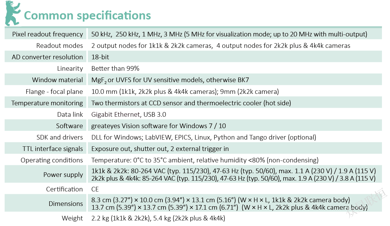 Straight out of Berlin comes ELSE, greateyes' new platform for your spectroscopy and imaging applications in the UV-VIS-NIR range. ELSE integrates cutting-edge low-noise electronics and ultra-deep cooling technology while keeping a compact camera design. Multiple readout speeds can be selected supporting pixel rates from 50 kHz up to 5 MHz. True 18-bit AD conversion allows to exploit the full dynamic range of the CCD sensor for highest performance and SNR. Choose from a wide range of sensors to find the best match with your requirements. ELSE is ideally suited for detection of very weak signal intensities where a low-noise floor is paramount. ELSE offers unprecedented possibilities for your measurements of tomorrow.