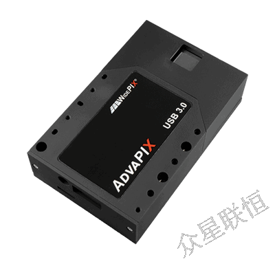 imaging detector is designed with emphasis on fast frame rate, which goes up to 1700 frames/s. The camera module contains a single Timepix chip that can be connected to a computer with USB3.0 interface. The sustainable high frame rate makes it optimal for X-ray imaging of dynamic processes, for spectral X-ray imaging or ion detection. Advanced data processing algorithms allow ion detection with spatial super-resolution of up to 200 nm.AdvaPIX
