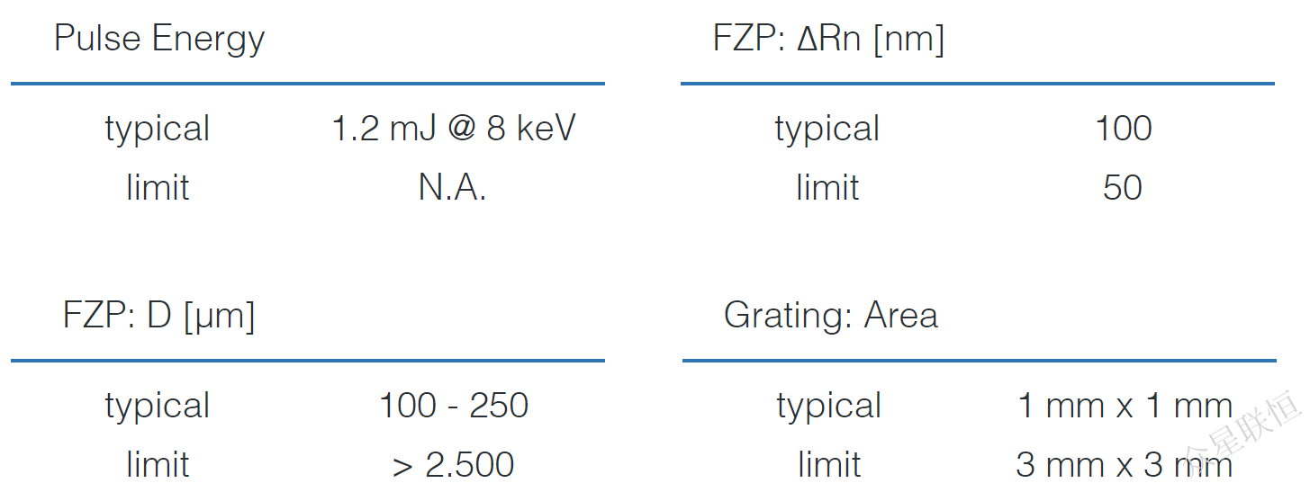 - Diamond zone plates allowing for peak power densities in the focal spot of 4x1017 W/cm2